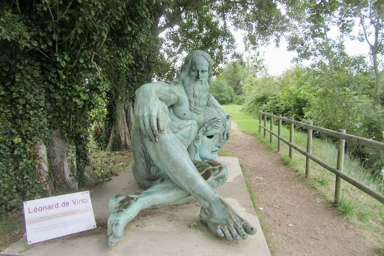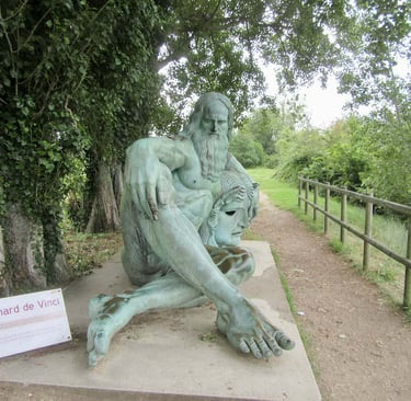 Il paraît que ceci représente l'artiste qui a peint la Joconde et le St Jean Baptiste et la Cène, et la Sainte Anne, qui a imaginé des villes, créé des mondes . Ne vivons nous pas, par hasard, dans un monde barbare au niveau artistique ? Bon, c'est vous qui voyez, chacun ses goûts.