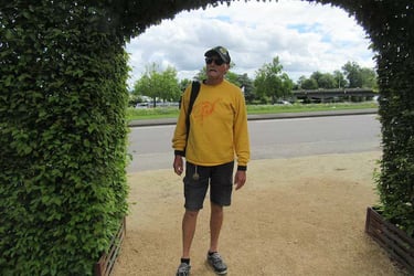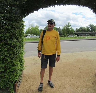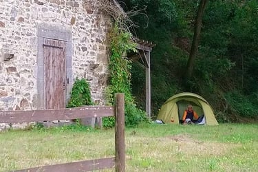 Deux nuits dans le camping de Mayenne ! Quelle aventure pour des résidents de la très courue station balnéaire de Carnac. A pied, nous allons muser dans la ville. Pour un peu, nous irions au cinéma. Petite bière, petit verre de vin rouge, le bar va fermer et cet énorme nuage qui se rapproche va-t-il crever ou glisser sans nous atteindre. Au pas de gymnastique, une goutte, deux gouttes, vite vite rentrons. Nous nous posons avec notre repas sur une table à l'abri d'un préau et le ciel déverse ses cataractes. Nous conversons avec un original qui rentre chez lui à Avignon en vélo. Il n'aime pas l'informatique. Il a juste des cartes et une boussole. Quand il ne sait pas par où passer, il demande tout simplement.