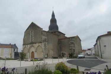 Contrairement à ce que j’ai vécu dans le Marais Breton, tout n’est pas totalement plat. Il y a des buttes et sur ces points hauts des villages. Par exemple, ici à Triaizé, je monte pour trouver ce bourg enroulé autour de sa belle église. Ajoutons cependant que ce n’est pas pour autant que je vais trouver à manger. De notre temps, les épiceries ont disparu des villages même assez importants. Le pauvre voyageur est obligé de s’organiser. Par contre, partout, il y a de grandes croix un peu obscènes d’où un Christ assez beau garçon pend . Est-ce un souvenir des Chouans ?. La Loire Atlantique est défigurée également par ce genre de témoignage d’une religion conquérante.