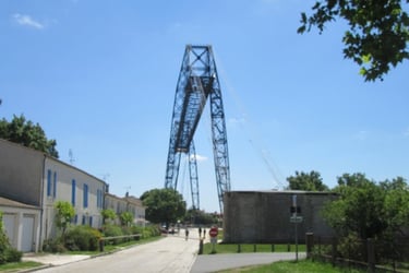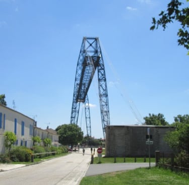 Le lendemain, je reprends la route curieuse de savoir si mon GPS à qui j’ai demandé de me conduire à Rochefort va me faire passer au large de La Rochelle. C’est ce qu’il fait. Chemin faisant, il me fait passer dans un village où dans une supérette, je peux m’acheter toutes sortes de bonnes choses . C’est Dompierre sur Mer mais il n’y a pas la mer. C’était un vœux pieux. Mais qu’importe ? C’est comme si on disait Ploemel sur Mer. Drôle, n’est-ce pas. Puis, je trace sans histoire sur une route banale, agréable. Et puis, changement d’atmosphère. Piste cyclable, coquelicots, blés en train de mûrir, platanes et tilleuls. Je suis à Rochefort. Je me faufile dans les petites rues avec leurs petites maisons collées les unes aux autres. Je ne peux pas tout visiter aussi je vais à l’essentiel : le fameux transbordeur du fameux film de Demy : les demoiselles de Rochefort. C’est mieux qu’au cinéma car je suis dans un décor de coquelicots et de ravissantes petites maisons blanches. La Charente est à marée basse. Un seul voilier se promène parmi les roseaux.