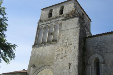 Naturellement, je passe la Charente sur ce fameux ouvrage. Je fais la conversation avec deux gamines qui vont également à Bordeaux. Parmi nous s’immisce l’inévitable bavard qui nous saoule avec ses explications sorties toutes fraîches de wikipedia .Puis, c’est la campagne toute fraîche qui monte et qui descend mais qu’importe. Dans un village appelé St Sulpice d’Arnoult, je fais le point devant une belle église château-fort.