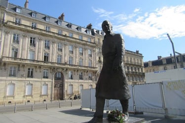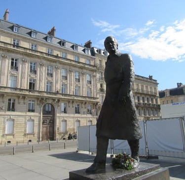 Ce n’est qu’une banlieue du temps passé. Un spectacle plus fascinant m’attend : la cathédrale ST Jean dans la lumière et aussi la statue de Chaban Delmas, le grand homme du pays.