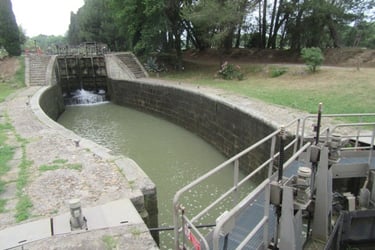 Après Toulouse, je découvrirai le fameux canal du Midi. Le fait est qu’il est particulier. En eau , il est chiche car aucune rivière ne l’alimente à la différence de son frère qui se goberge de la bonne rivière la Garonne mais il sent l’élégance du 17ème siècle.