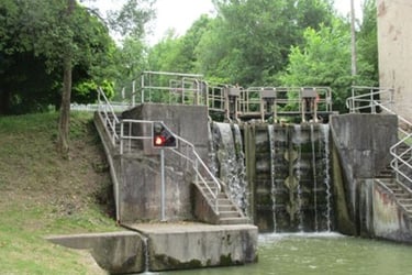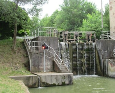 C’est ce qui est drôle. Les arbres n’ombragent pas le canal à proprement parler mais la petite route qui l’accompagne. On ne hâlait pas à cette époque ? Pour ce qui est des écluses, elles ne font pas semblant.