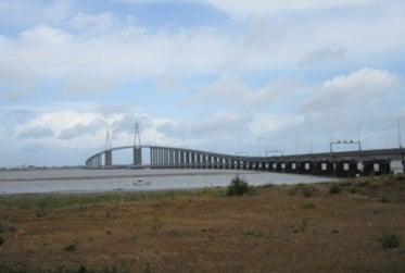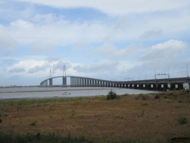 Une bonne occasion pour s’arrêter car une magnifique prairie fleurie s’offrait à moi juste en face. La pluie tenta de me déranger mais cet effort fut vain. Le lendemain, je dis adieu à mes amis les aviateurs et je repris la route. Mon Dieu, mon Dieu quelle journée ! J’approche de Saint Nazaire par une piste cyclable d’où je contemple ce que je ne vois jamais dans mon Carnac de carte postale : sous les nuages gris et mouillants, un paysage industriel où ne manque même pas une torchère. Et puis je roule dans une banlieue ouvrière où les petites maisons grises affirment la réussite modeste dans une vie modeste de leurs courageux propriétaires. Il faut bien maintenant que j’affronte le pont. Il est juste question de ne pas se faire désarçonner par les rafales. Tout juste si je peux tourner la tête pour admirer le panorama. En fait, non, je ne peux pas courir le risque de zigzaguer. Au sommet, le vent est impitoyable mais bientôt je descends vers les confortables résidences secondaires de St Brevin.
