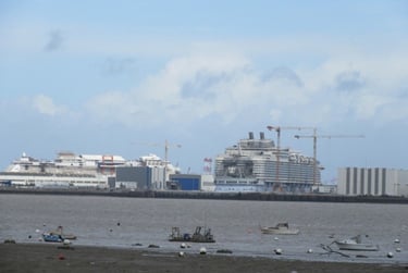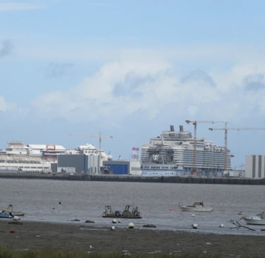 Comme l’estuaire est gris, comme le bateau en construction est gigantesque.