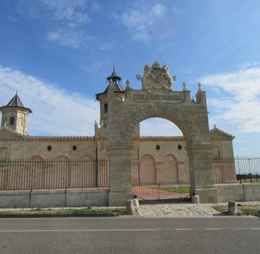Un rien déprimée, je reprends la route vers Pauillac .On ne sait pas pourquoi, le GPS a des vapeurs. Je le ferme et continue en suivant les indications de la départementale. Il fait beau maintenant et j’arrive dans ce joli bourg où je prends un café chez un Arabe qui me fait la conversation. Toujours ignorant le GPS, je suis la Gironde mais finalement, ce n’est pas si facile et puis zut, je donne une seconde chance à la machine. Il me fait suivre une quatre voies pendant quelques kilomètres et puis, ouf, je suis de nouveau sur une toute petite route solitaire. Je trouve de l’eau dans un cimetière et je n’ai plus qu’à admirer les vignes et leur château. Je suis contente de ma route maintenant. Mais j’approche dangereusement de Bordeaux. Tout est peuplé. Il faut que je me case avant de me retrouver au centre de cette grande ville.