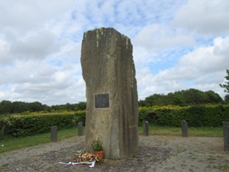 Je roulais contre un vent debout bien conséquent. Aussi quand je vis un grand menhir dressé au bord de la route, j’en profitai pour m’arrêter. Mais la pierre n’était pas ancienne. Elle était juste destinée à perpétuer la mémoire de ces pauvres jeunes gens qui étaient venus d’au-delà de la mer périr en terre étrangère.