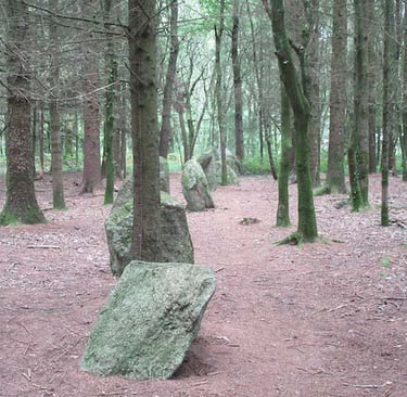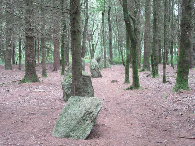 Nous nous trouvons au milieu d'un alignement qui n'est pas celui de Carnac tout beau tout propre mais sauvage au milieu d'une forêt, les alignements de Kersolan (commune de Languidic), je dirais forêt de Camors.