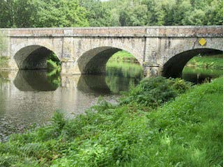 Nous voilà partis avec la tente décathlon ligotée sur la carriole de Jippy. Notre premier arrêt est à Kergoulec pour rendre visite à Eugène et Brigitte qui sont malades. Et Eugène a bien mauvaise mine quoique charmant comme d'habitude. Notre route continue ensuite selon les plans de Jippy et je dois dire que c'est parfait. Dès le départ, nous jouissons du charme de la randonnée : voir des amis qu'on n'aurait pas vus autrement, tomber sur des lieux qu'on avait ignorés jusqu'à maintenant.