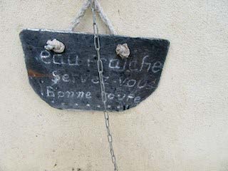 Cette écluse de Poulhibet fait honneur à notre ancienne patrie. Elle fournit de l'eau et même sous une forme particulièrement affable. Même les chiens ne sont pas oubliés, ils ont leur gamelle. Dans la maison une toupie est occupée à offrir le café et éventuellement vendre des sacs à main qu'elle fabrique dit-elle « pour garder le moral car elle a un cancer. Son mari d'ailleurs est déjà mort de quelque chose d'atroce. Le Docteur Ferré ? Bien sûr qu'elle le connaît , il l'a opérée autrefois ». Et le Docteur apparaît dans toute sa gloire de randonneur crotté.